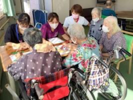 レクリエーション後、メッセージ付きの間違い探しカードをプレゼントしてもらった利用者さまは涙ぐまれ、とても喜んでいました。
