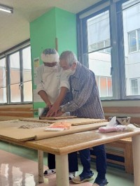 体験した利用者さまたちは「難しかった!一生できない体験ができました」「太くなっちゃった。」「包丁が重たかった!」等、それぞれの感想で楽しんでくれました。