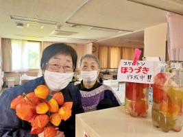 8月にデイケアのご利用者様よりいただいたほおずきを、皆さんと見て楽しみました。
