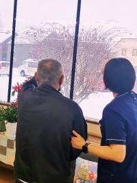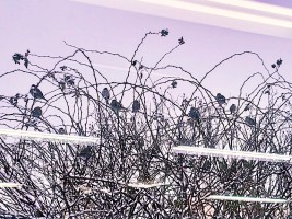12月11日、通所フロアの窓から外を眺めるとスズメさんが集まっていたので、施設で育てたひまわりの種とお米を撒いてみると、沢山のスズメさん達が集まってきました。(30羽位いたかも!?)