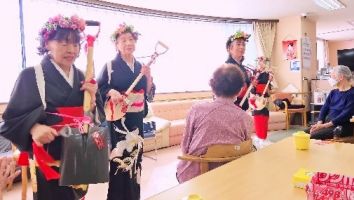 2月19日木曜日 音更町社会福祉協議会のボランティア団体「友愛シスターズ」が来設され、スコップ三味線を披露していただきました😄